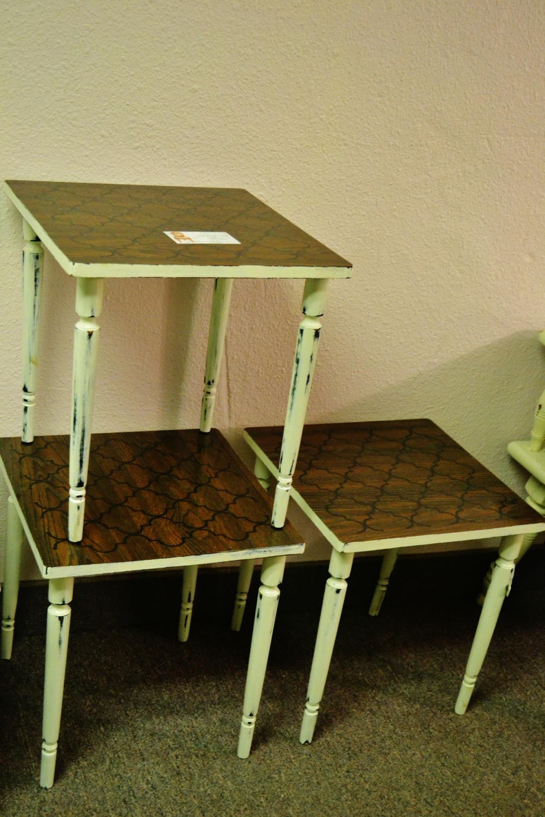 I am still rearranging because I recently just got these two incredible farmhouse like side tables I just refinished and trying to see where they fit so I will have an updated living room blog pics for you guys when I'm done...but check these tables out!